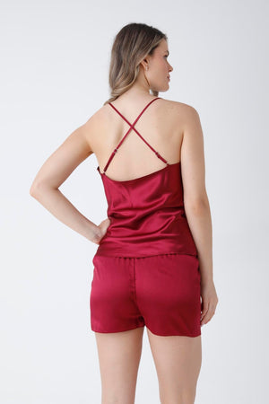 Maroon Guipure Detailed 6-Piece Satin Nightgown Dressing Gown Set
