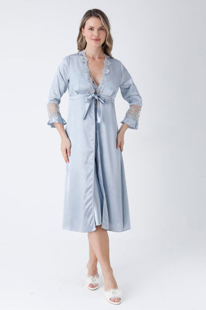 Mist 6 Piece Long Slit Satin Nightgown Dressing Gown Set